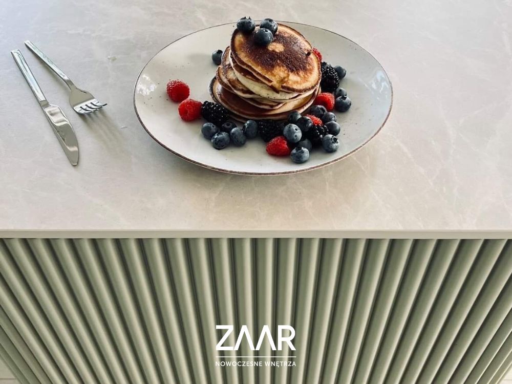 Jednym z najbardziej fascynujących elementów ryflowanych mebli są fronty. Regularne liniowe zagłębienia, często w formie wyżłobionych ramek, tworzą przestrzenną kompozycję, która zachwyca zarówno regularnością, jak i niejednorodnością. Ryflowane fronty są ponadczasowe, nadając aranżacji kuchennej czy salonowej swoistej klasy i efektowności o przytulnym wyrazie.
